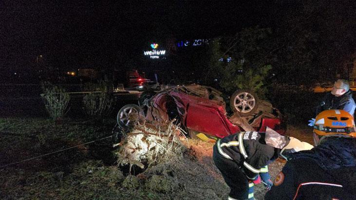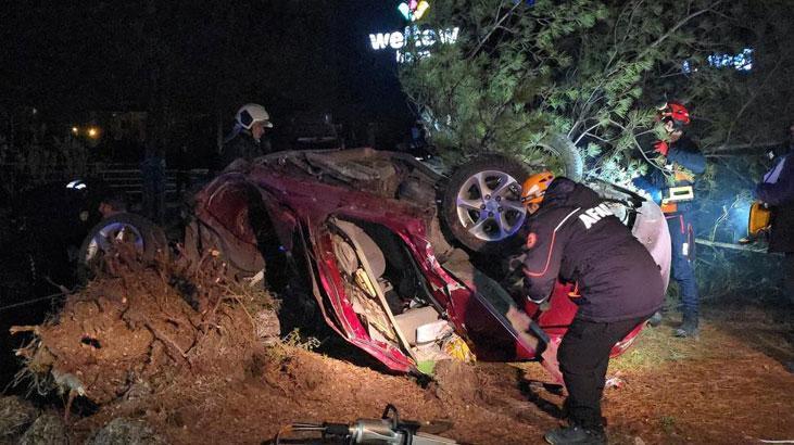 Karabük’te feci kaza! Otomobil, takla atarak çarptığı ağacı kökünden söktü