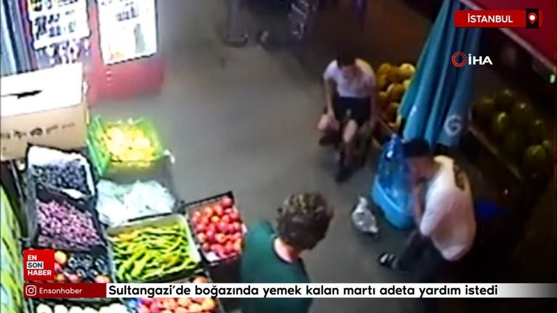 Sultangazi’de boğazına takılan tavuk budu nedeniyle nefes almakta güçlük çeken martı, bir marketin önünde oturan gençlerden adeta yardım istedi. Gençlerin yardımına koştuğu martı boğazına takılan yemeğin çıkması ile rahat nefes alırken, o anlar güvenlik kamerasına yansıdı.