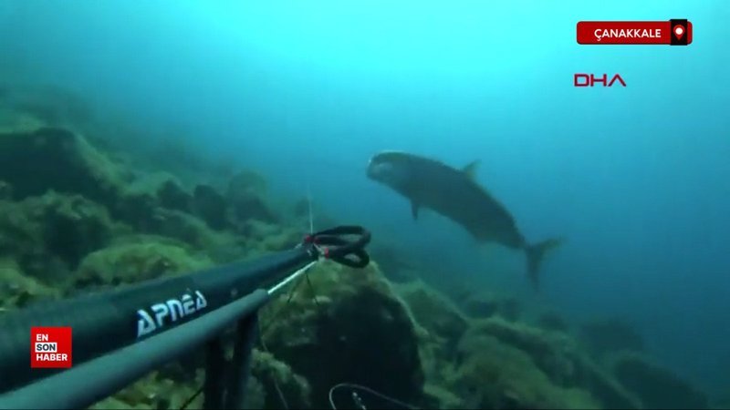Çanakkale’de zıpkınla 1,8 metre boyunda akya balığı avladı