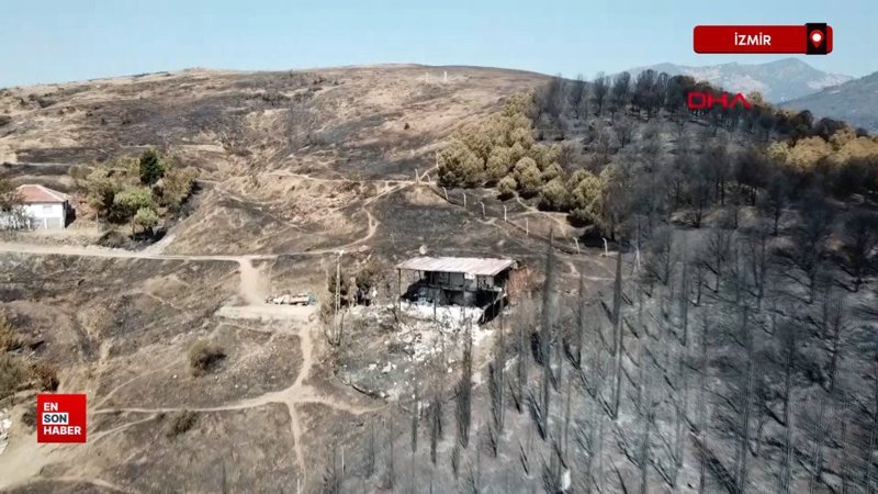 İzmir’in Karşıyaka ilçesindeki Yamanlar Dağı’nda 15 Ağustos’ta başlayan ve 62,5 saat sonra kontrol altına alınan yangında zarar gören 17 evin bulunduğu Onur Mahallesi, havadan dronla görüntülendi. Evleri yanan üniversite öğrencisi Yağmur Mızrak (22), “9 Eylül’de üniversite açılacak ama ne bir bavul var ne bavulu dolduracak eşyam ne de bilgisayarım var. Evin içindeki hiçbir şey kalmadı. Kitaplarım, her şeyim gitti. O gün evden neyle çıktıysak onunla kaldık” dedi