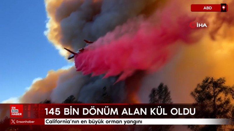 ABD’nin California eyaletinin en büyük orman yangını, 145 bin 172 dönümlük alana yayıldı. Alevlerle mücadele sürüyor.