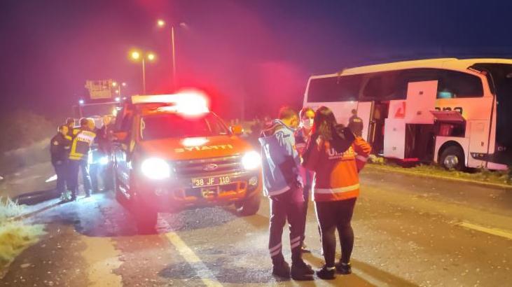 Kayseri’de kontrolden çıkan otobüs önce refüje ardından aydınlatma direğine çarptı. Kazada aralarında askerlerin de olduğu 16 yolcu yaralandı. Öte yandan şoförün uyuyakaldığı iddia edildi.