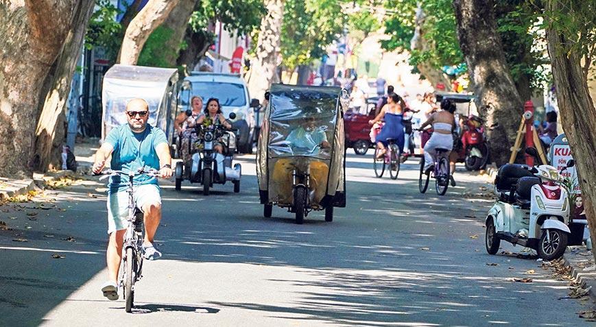 Yaz aylarında her gün binlerce kişiyi ağırlayan İstanbul’un gözdesi Adalar’da mantar gibi çoğalan akülü araçlar, yürümeyi çileye dönüştürüyor. Büyükada, Heybeli, Burgaz ve Kınalı’da bazı yollara akülü araç girişinin yasak olmasına rağmen buna uyan yok