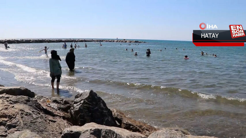 Hatay’da ‘El Nino’ sıcaklarından bunalan vatandaşlar, Akdeniz’in serin sularında serinlemeye çalışıyor.