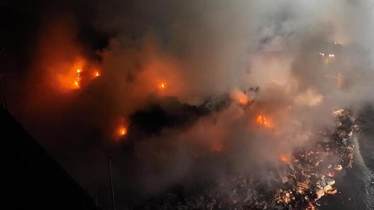 Alev alev yanan geri dönüşüm tesisi böyle görüntülendi