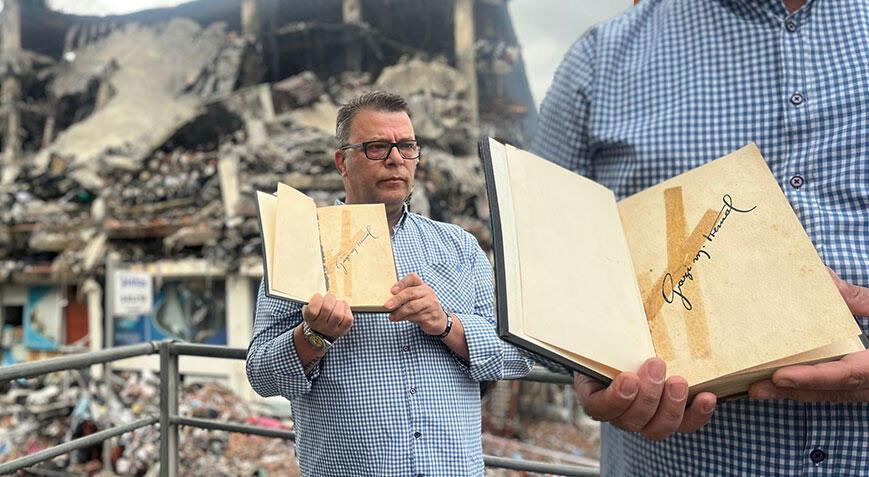 Başakşehir İkitelli Organize Sanayi Bölgesi’nde 4 gün boyunca yanan 6 katlı binada lojistik depolama yeri işleten Yakup Sermet Tezcan’ın (53) babaannesi Melek Per Çobanyıldızı Tezcan’ın İzmir’de Atatürk’e imzalattığı öne sürülen kitap, itfaiye erleri tarafından alevler içinden kurtarıldı.