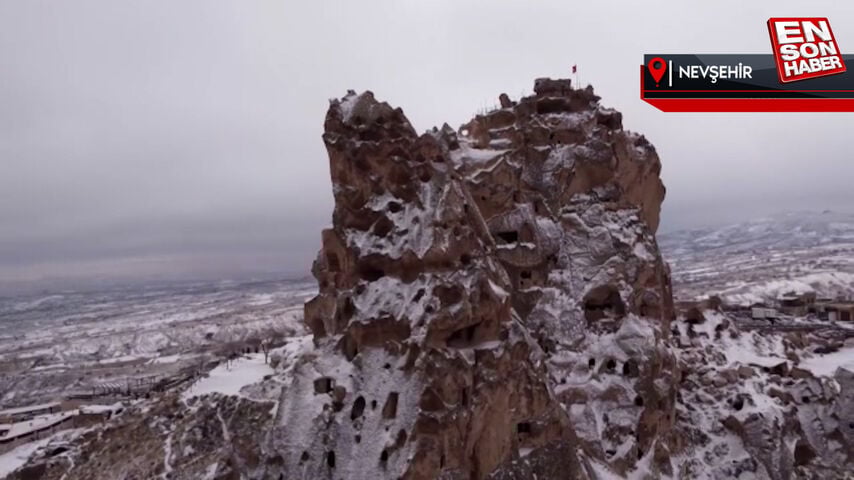 Kapadokya kar yağışının ardından beyaza büründü