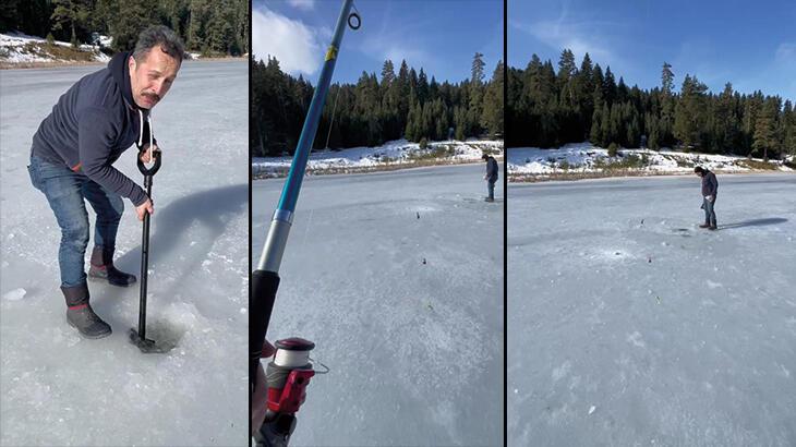 Buz tutan gölde balık tuttular