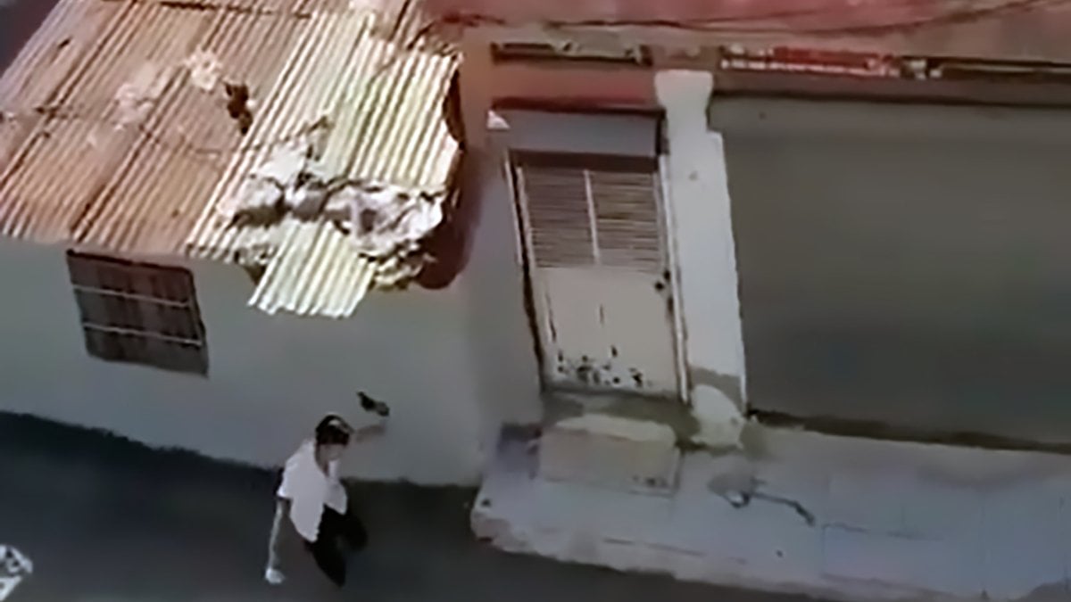 Kendisine borcu olduğunu söylediği kişinin evine kurusıkı tabancayla ateş açan 17 yaşındaki C.R.’nin tehditler savurduğu anlar, cep telefonuyla görüntülendi.