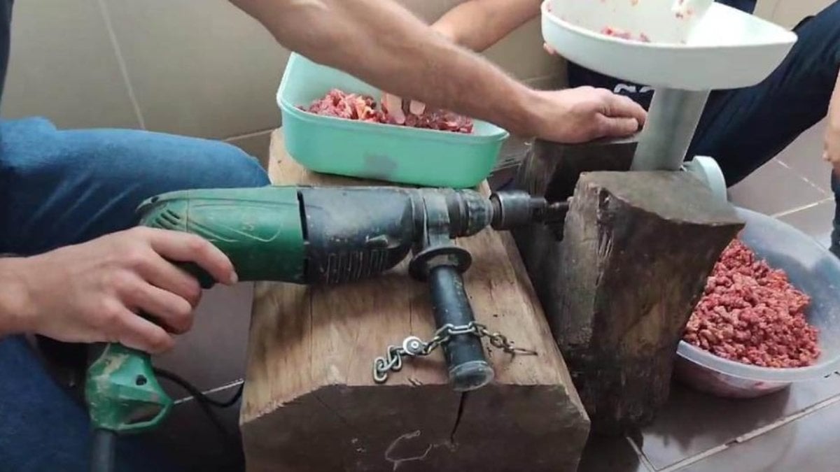 Rizeli yine kıvrak zekasını konuşturdu, kıyma yaptıracak kasap bulamayınca matkaptan kendi kıyma makinesini yaptı.