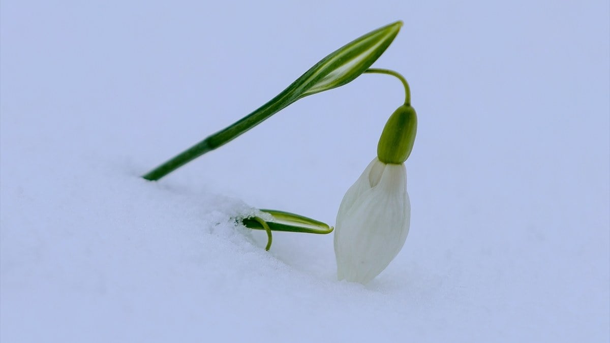 Sakarya’da Çam Dağı, beyaz örtüyle kaplandı! Dağın eteklerini kardelenler süsledi
