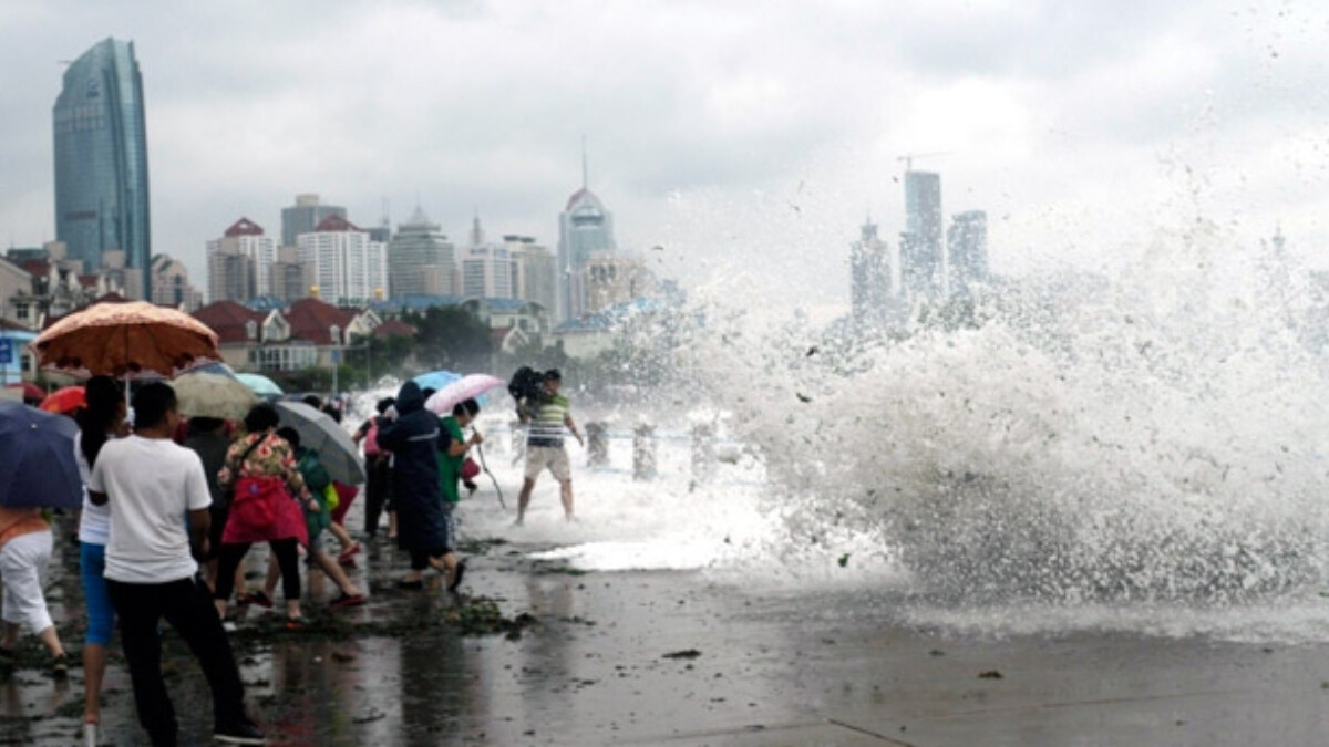 Çin’de kafe çalışanları fırtınada tuttukları tenteyle birlikte havalandı