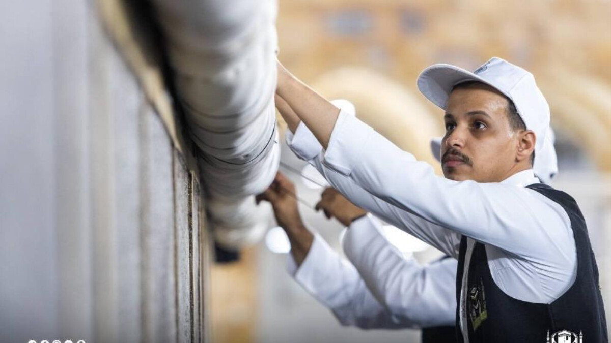 Kabe’nin örtüsü, Hac mevsiminin başlamasıyla her yıl olduğu gibi bu yıl da 3 metre yukarı kaldırıldı.