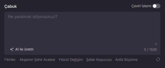 1500 karakterlik sınırı içerisine ortam, atmosfer, eylemler ve amaçlanan görsel estetikle ilgili temel ayrıntıları dahil ederek istediğimiz sonucu alıyoruz.