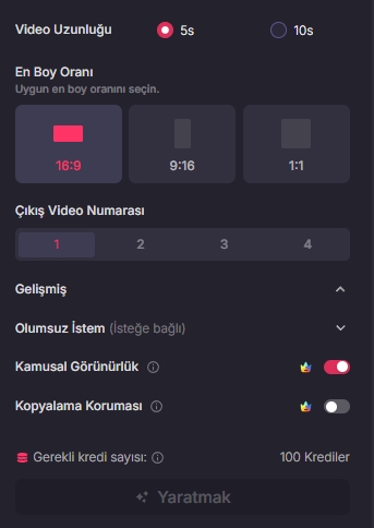 Oluştur” butonuna tıkladıktan sonra bekleme süreci başlıyor. Video oluşturma işlemi genellikle 2 ile 5 dakika içinde tamamlanıyor.