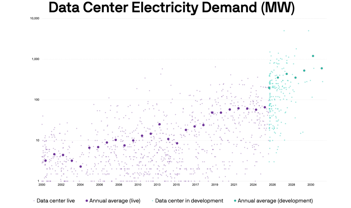 Rapora göre bu hızlı artış, hem tesislerin fiziksel boyutlarının büyümesinden hem de yapay zeka odaklı yüklerin şebekeye bindirdiği yeni taleplerden kaynaklanıyor. Bugün veri merkezlerinin yalnızca küçük bir bölümü 50 MW’ın üzerinde elektrik tüketiyor. Ancak yeni projelerin ortalaması önümüzdeki on yılda 100 MW’ın üzerine çıkacak. Dahası, planlanan tesislerin yaklaşık dörtte biri 500 MW’ı aşacak, bazı dev projeler ise 1 GW’ın üzerinde kapasiteye ulaşacak.